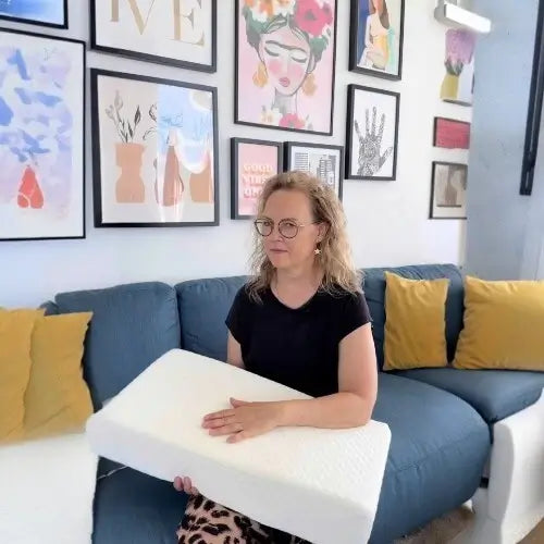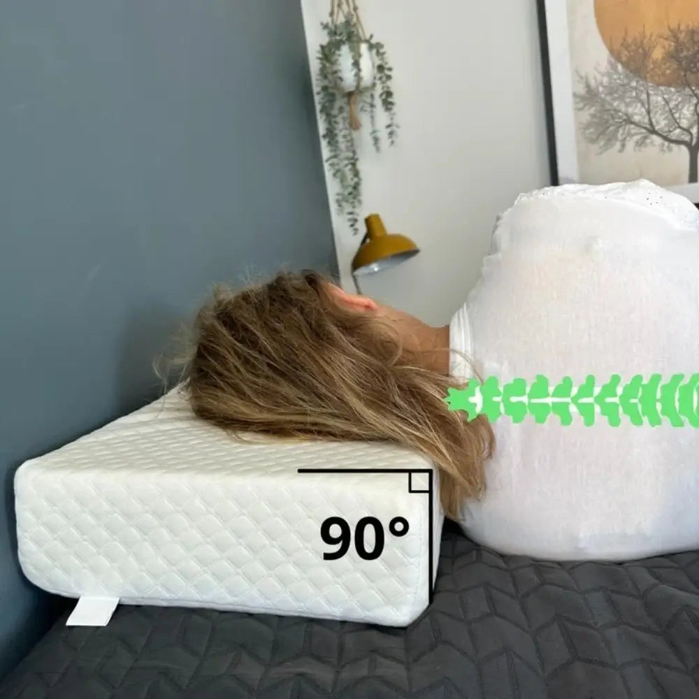 The QloudCube's precise 12cm cube shape fills the exact gap between shoulder and head when side sleeping. This maintains perfect spinal alignment all night, preventing the unnatural neck bend that causes pain. Our high density medical grade foam holds this critical height consistently, unlike traditional pillows that collapse under pressure.